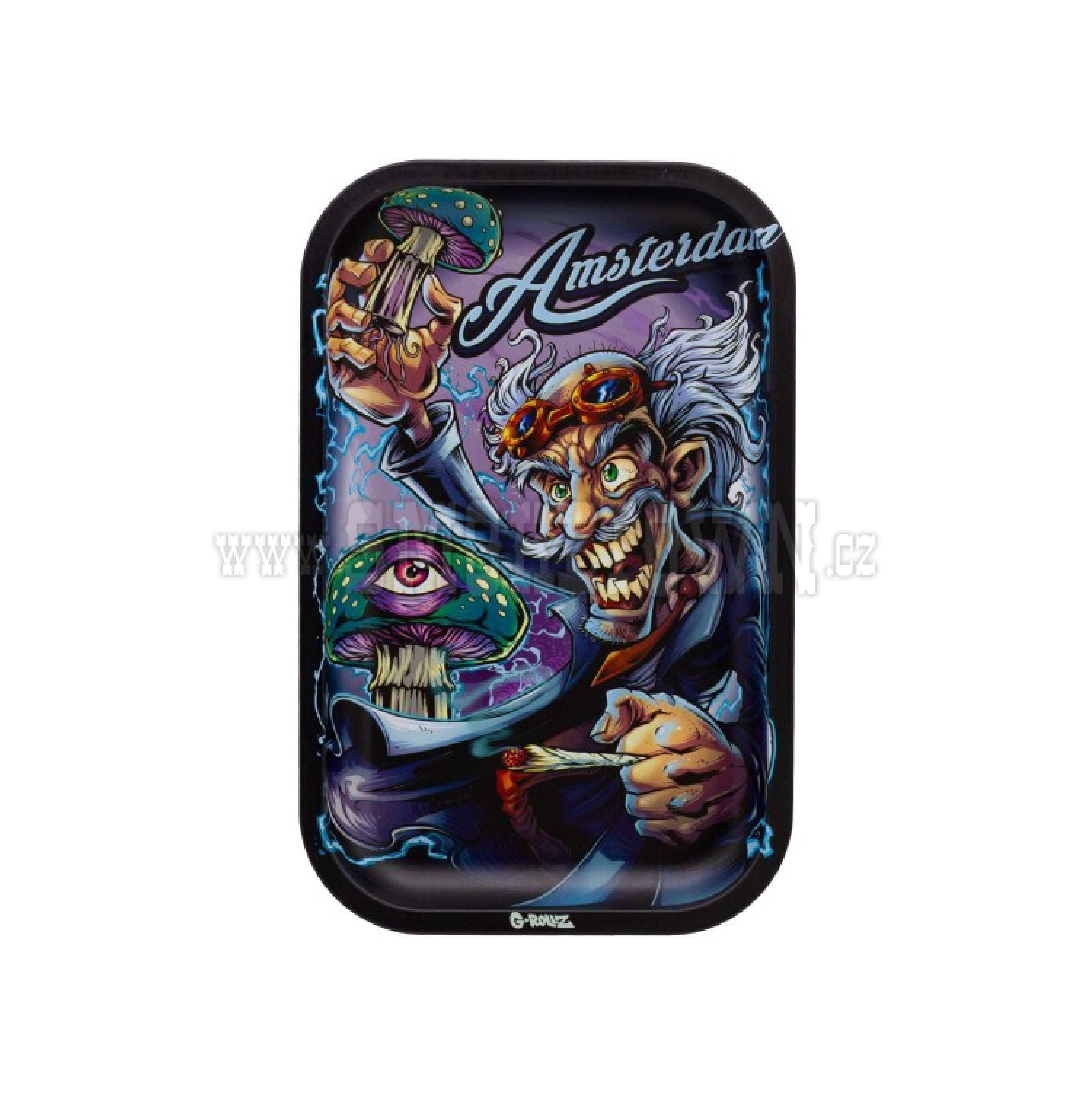 Podtácek na balení od G-Rollz s potiskem 'Amsterdam Mad Scientist' ve velikosti Medium Tray 17.5 x 27.5 cm